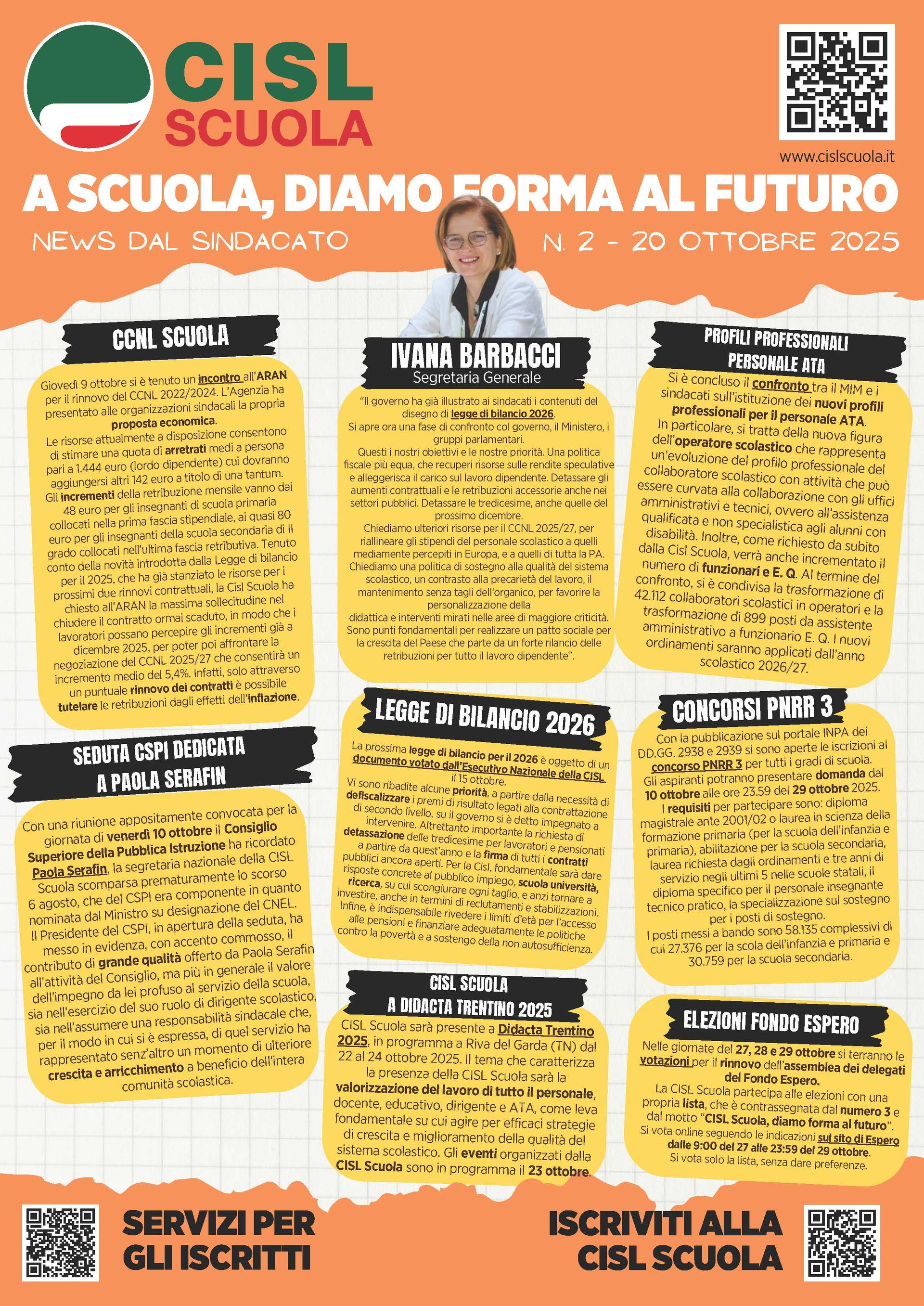In allegato trovate il secondo numero di ottobre 2025 di "A scuola, diamo forma al futuro - News dal sindacato", la locandina (formato A3) che la segreteria nazionale della CISL Scuola recapita due volte al mese a tutte le istituzioni scolastiche.